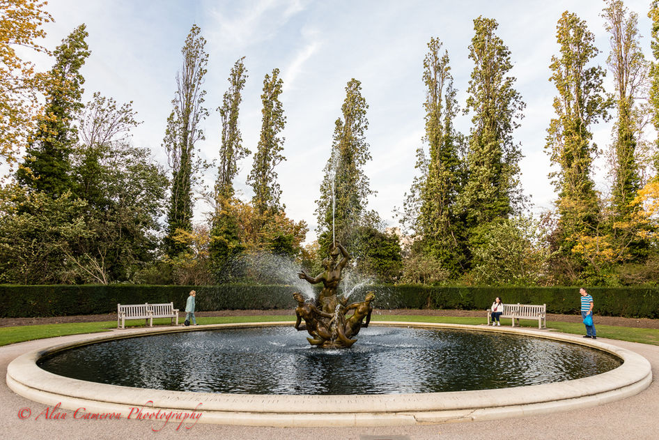 I stood in one place in front of the Triton Fountain in Regent’s Park in London and I made 18 exposures between 15.49.55s and 15.58.45s pm GMT. I captured small snippets of the space-time continuum (between 1/40 and1/160s) in the 73.7º angle of view of my lens to record that period of 8 minutes and 50 seconds.